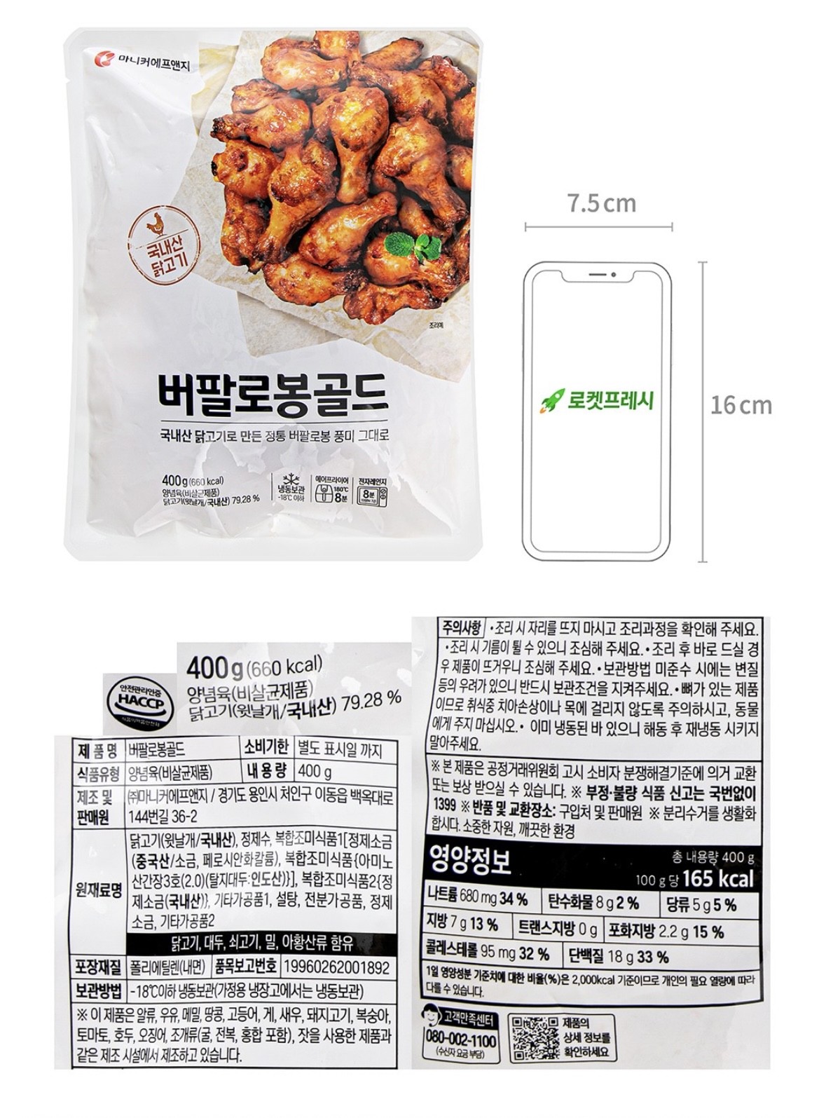 수입산보다 크기는 살짝 작지만 국내산 닭을 사용한 제품이라