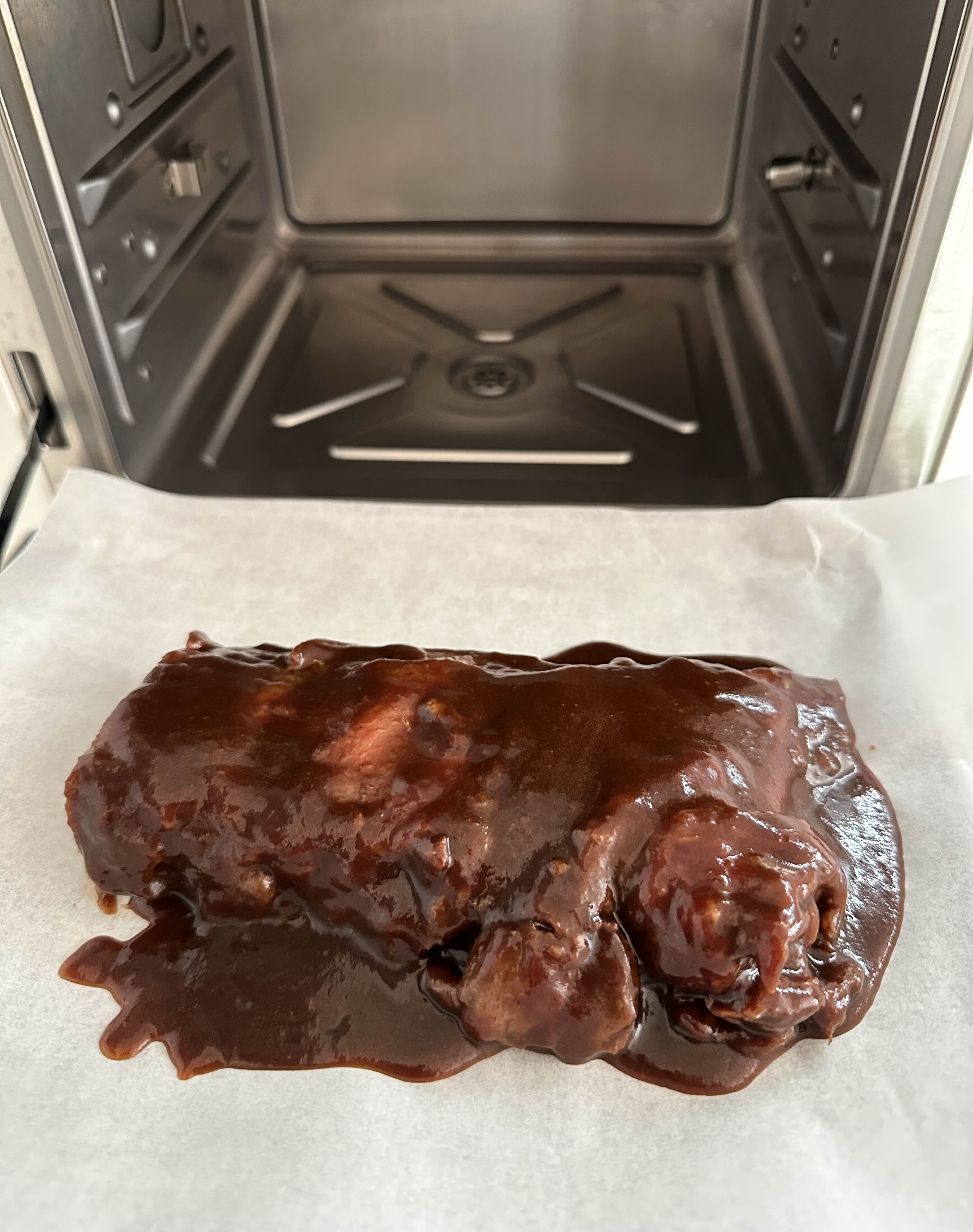 포장지를 뜯어보면 달콤한 바베큐 소스가 듬뿍 발라진 폭립이 먹음직스러워 보였어요.