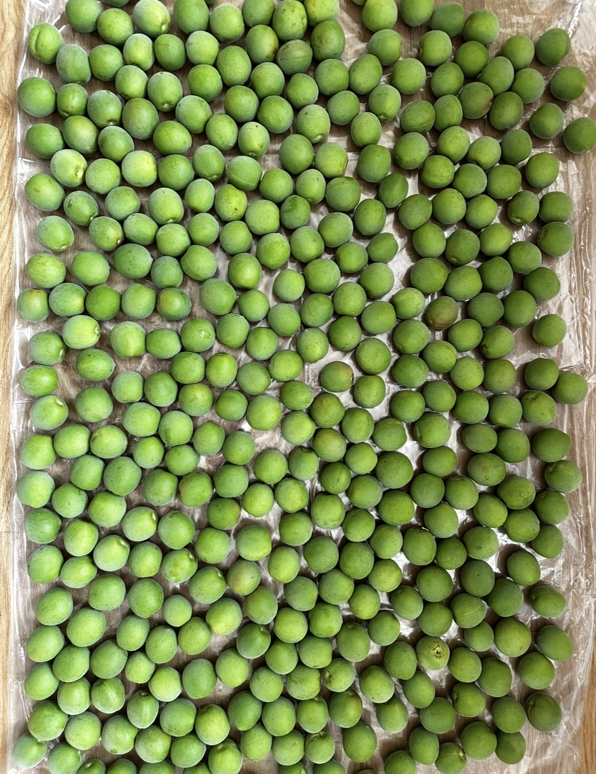 1. 매실 꼭지 따기: 알코올 스왑으로 소독한 이불 바늘 사용.