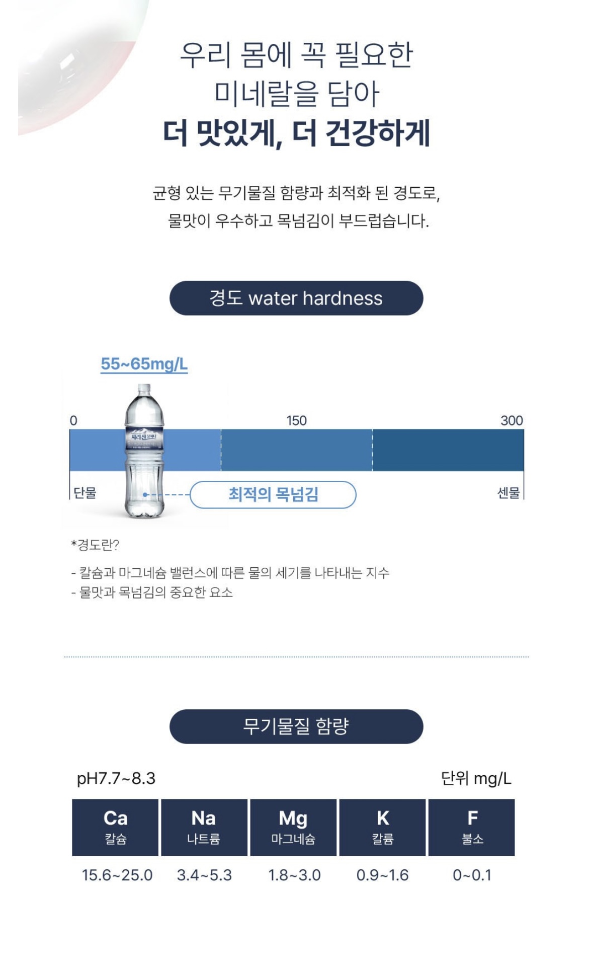 아래 표에서 자세한 무기물 함량과 경도 수치를 확인해 보세요.