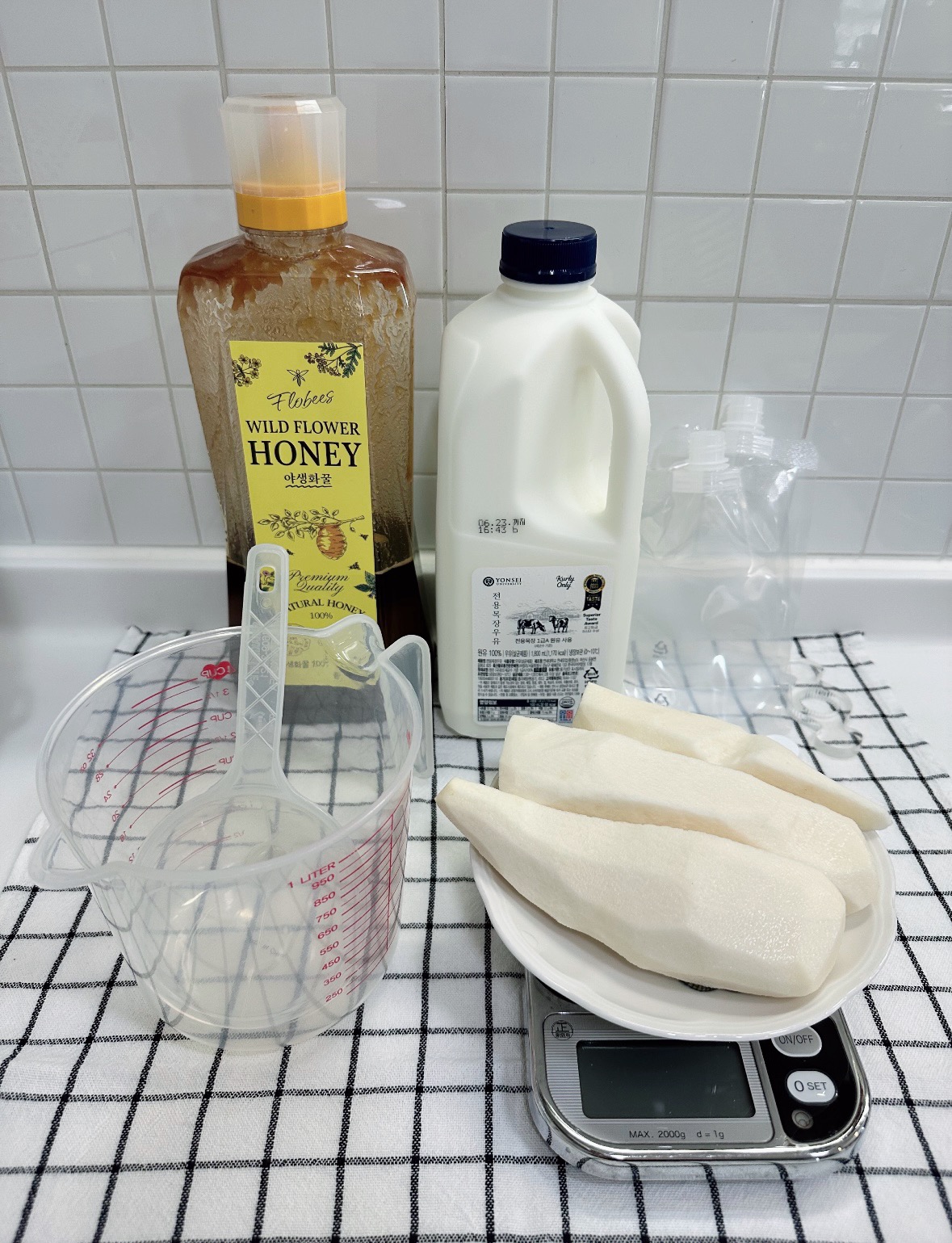 오랜만에 ‘마 우유 스무디팩’을 만들었어요.