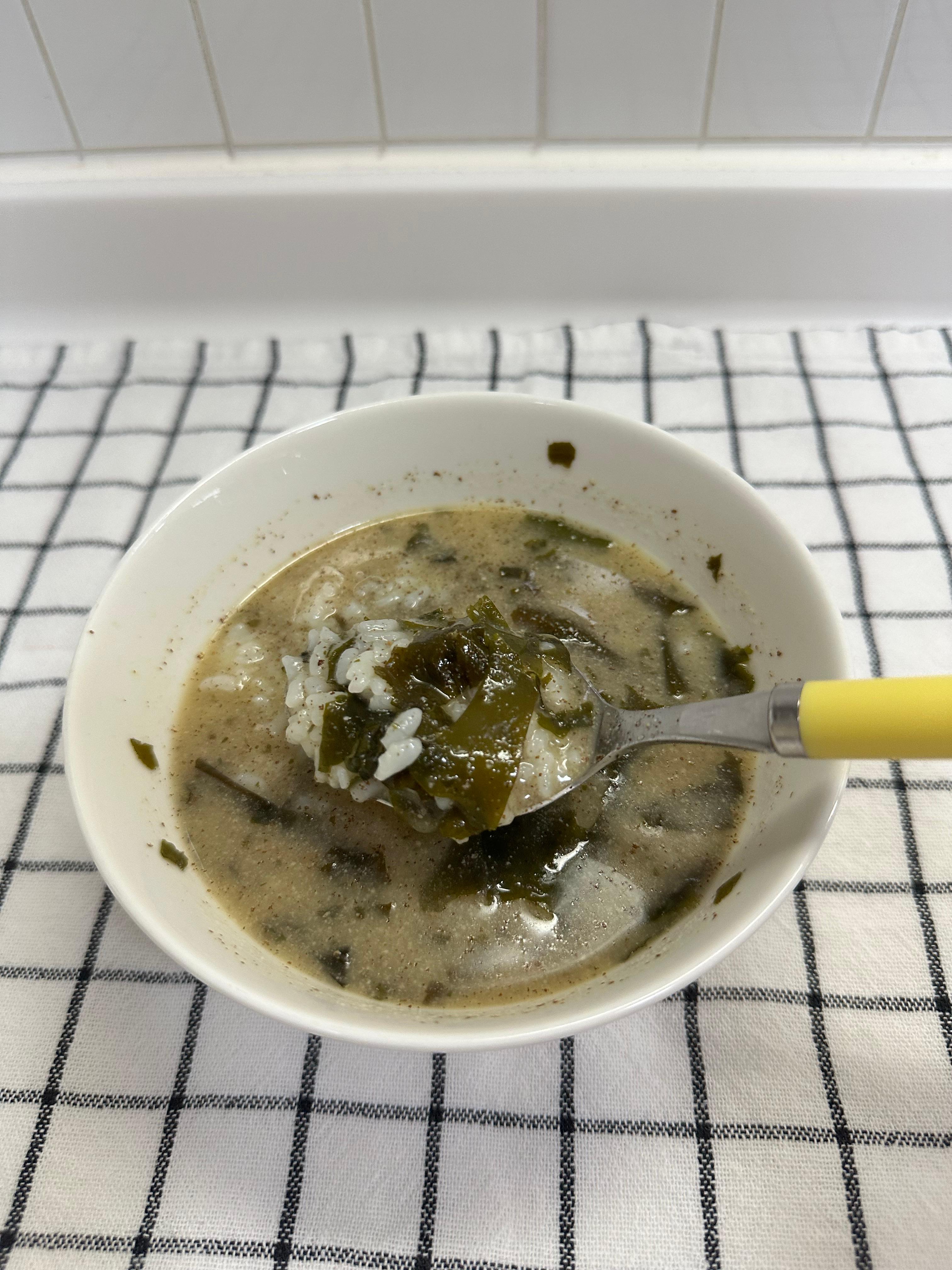미역국을 미리 데운 후 들깨가루 한 스푼을 넣어 먹는데,
