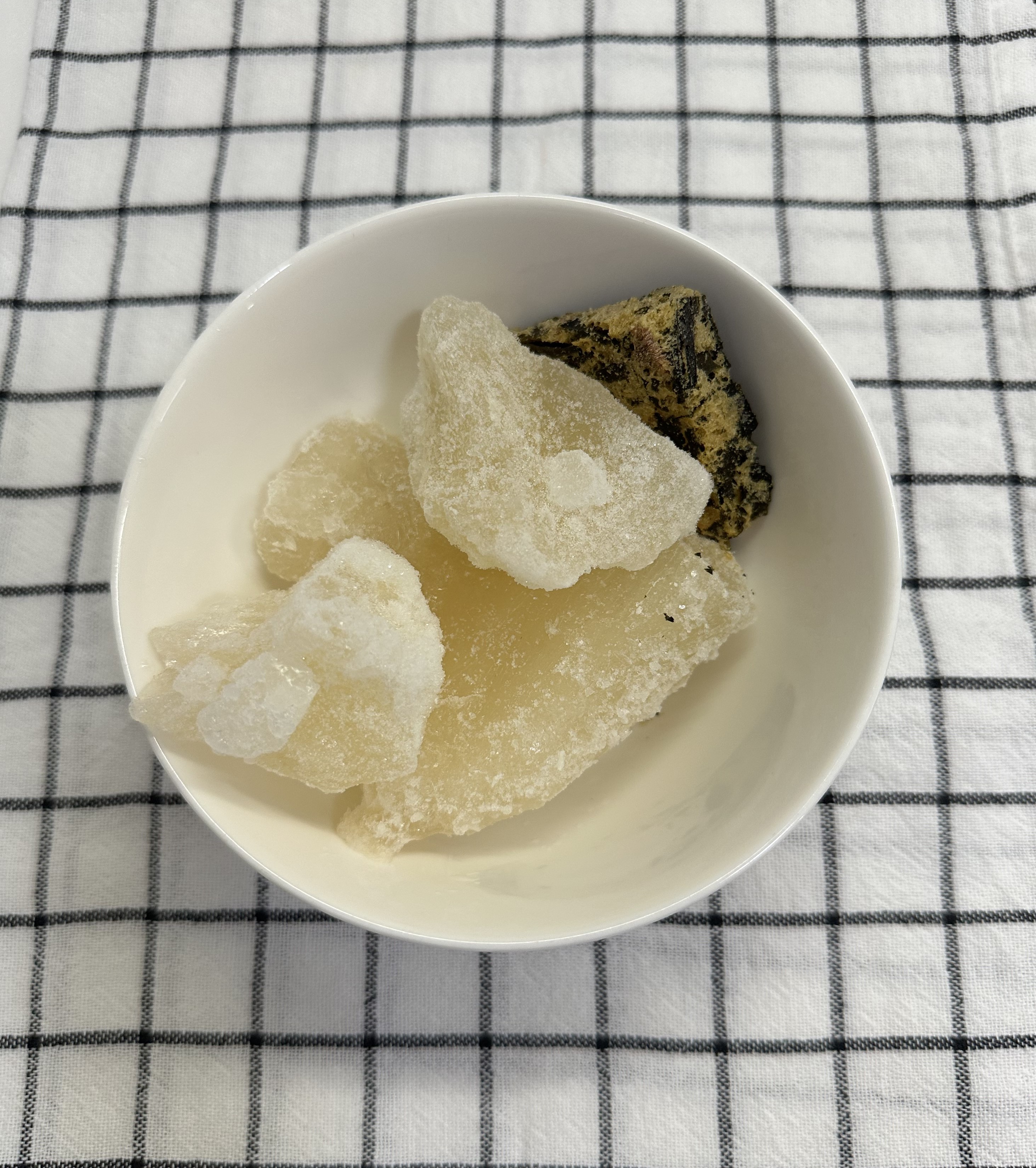냉동실에 얼려둔 사골국물 몇 조각을 그릇에 넣고