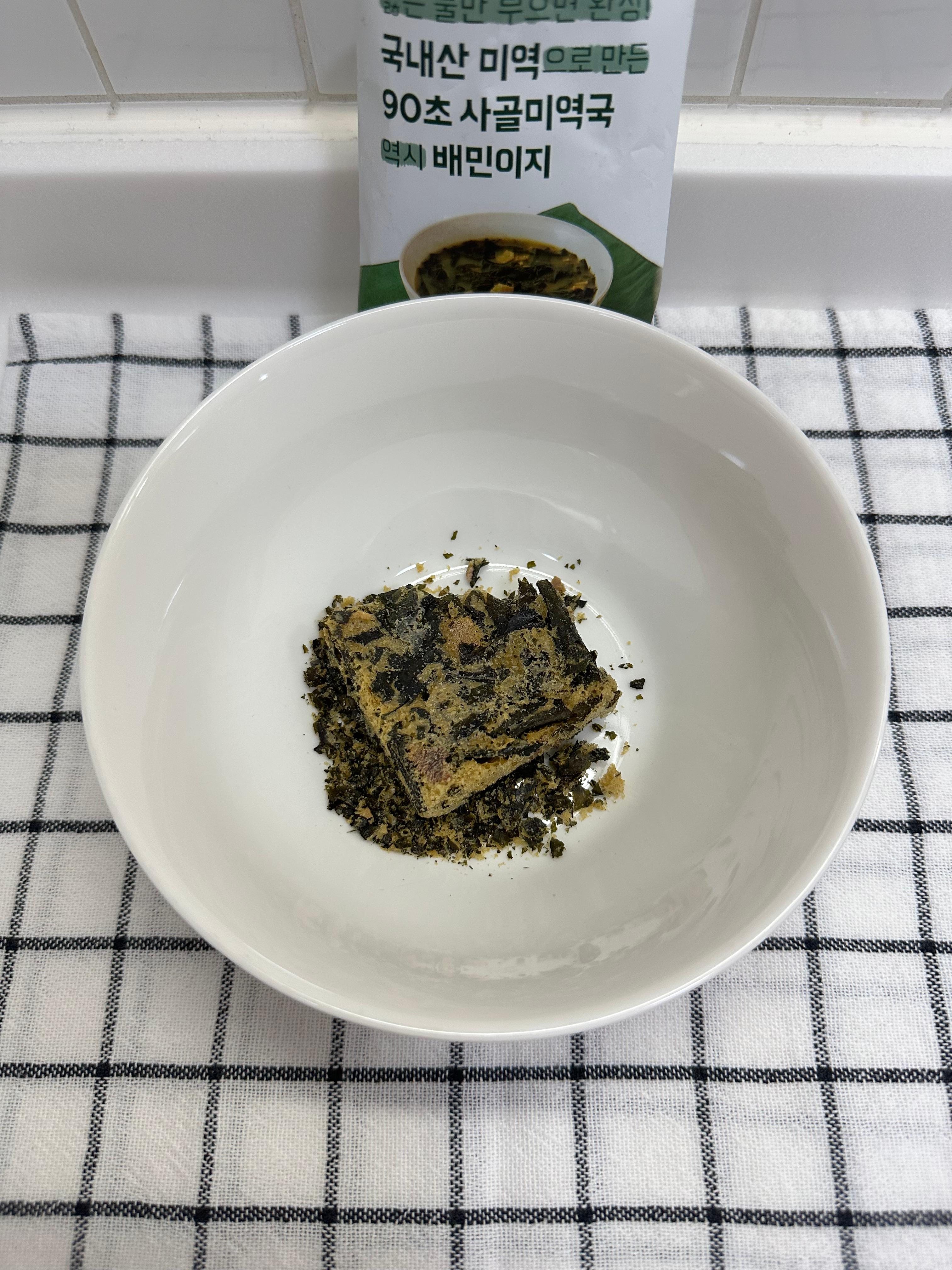 배민이지 90초 사골미역국에 물대신 집에서 끓인 사골국과 들깨가루 추가. 영양도 챙기는 간편식 한끼 뚝딱!